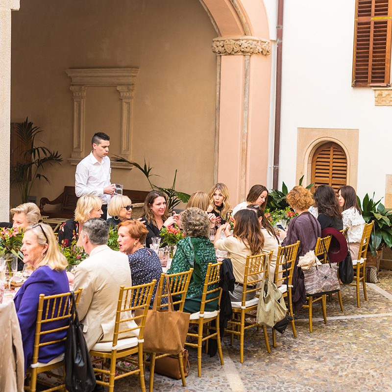 El pasado 9 de mayo, las mujeres más influyentes de Mallorca, así como periodistas de toda la isla, se reunieron alrededor de una larga mesa impecablemente decorada con motivos florales para disfrutar de una deliciosa comida ofrecida por el restaurante Strano quien sirvió delicias italianas como crema de tomate y burrata.