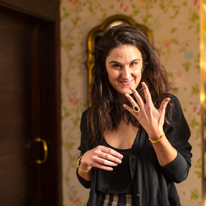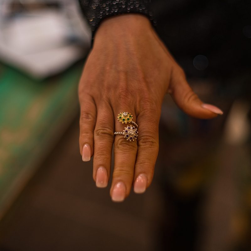 Las propias invitadas pudieron hacer de modelos para estas piezas de oro únicas hechas con piedras preciosas y semipreciosas.