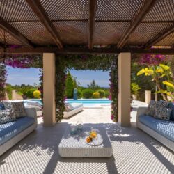 Al entrar en el espacio recién diseñado, se quedaron embelesados. Antes, su casa, aunque muy querida, parecía cansada. Ahora no parecía la misma, sino renovada. Atrás quedaban los suelos y los apliques de luz anticuados, sustituidos por opciones elegantes y modernas. Las hermosas vigas originales se habían pintado, las ventanas de madera lucían un blanco impoluto, y las barandillas de hierro de las ventanas y las barras de las cortinas, antaño rudas, se deslizaban ahora con un suave tono de latón oxidado. De pie en la cocina, contemplando los atrevidos muebles azules hechos a medida, las encimeras de piedra de cuarzo y los taburetes de mimbre, el corazón se llenaba de alegría. Justine Knox es famosa por su amor y su inteligente uso del color, y esta habitación fue una clase magistral. “Los colores son las sonrisas de la naturaleza”, dice el refrán, y en ninguna parte era más cierto que en esta finca de piedra, rodeada de olivares.