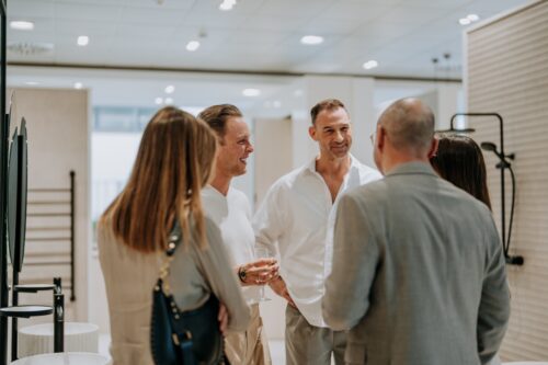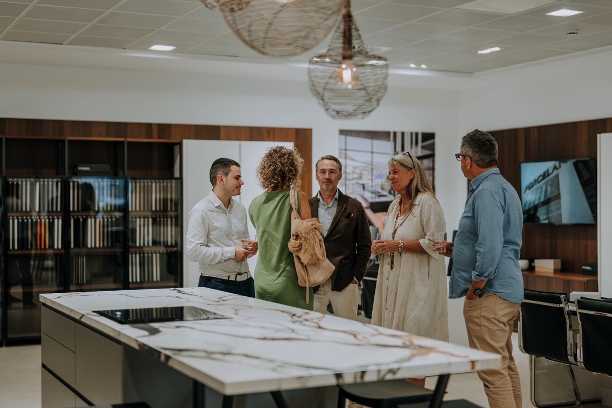 El personal de Porcelanosa dirigió el evento como un reloj, manteniendo las copas de champán llenas y los canapés a mano, incluyendo exquisitos sabores como el tartar de ternera, paté, maki y frutos secos con chocolate. Su hospitalidad se ofreció con el telón de fondo de su inmersivo showroom de diseño de cocina y baño, ofreciendo una exposición de sus reconocidas líneas de productos de alta gama.
