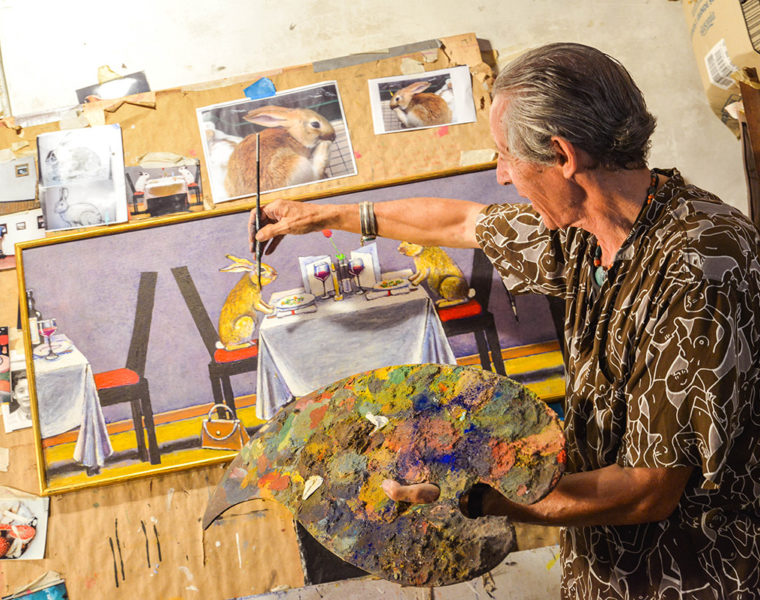 El artista irlandés John Redmond presenta su colorida obra en el restaurante Sebastián en Deià, con motivo de su inauguración para la nueva temporada.