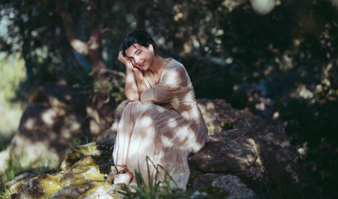 Y mientras posa, sentada en las escaleras de su estudio, Lola confiesa que ella y su marido adoran Mallorca, su bucólico paraíso y parte de su esencia e inspiración diaria. A pesar de tener que pasar largos periodos de tiempo fuera por trabajo, anhelan volver y reconectar con sus amigos de aquí. “Mi hija pequeña nació en Campanet, por lo que ya acumulo muchos momentos importantes en la isla”, concluye, al tiempo que su silencio se ilumina con su radiante sonrisa y una empatía sumamente acogedora.