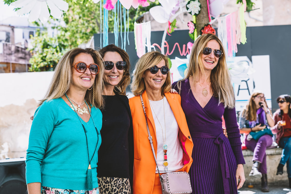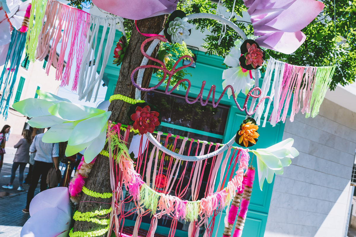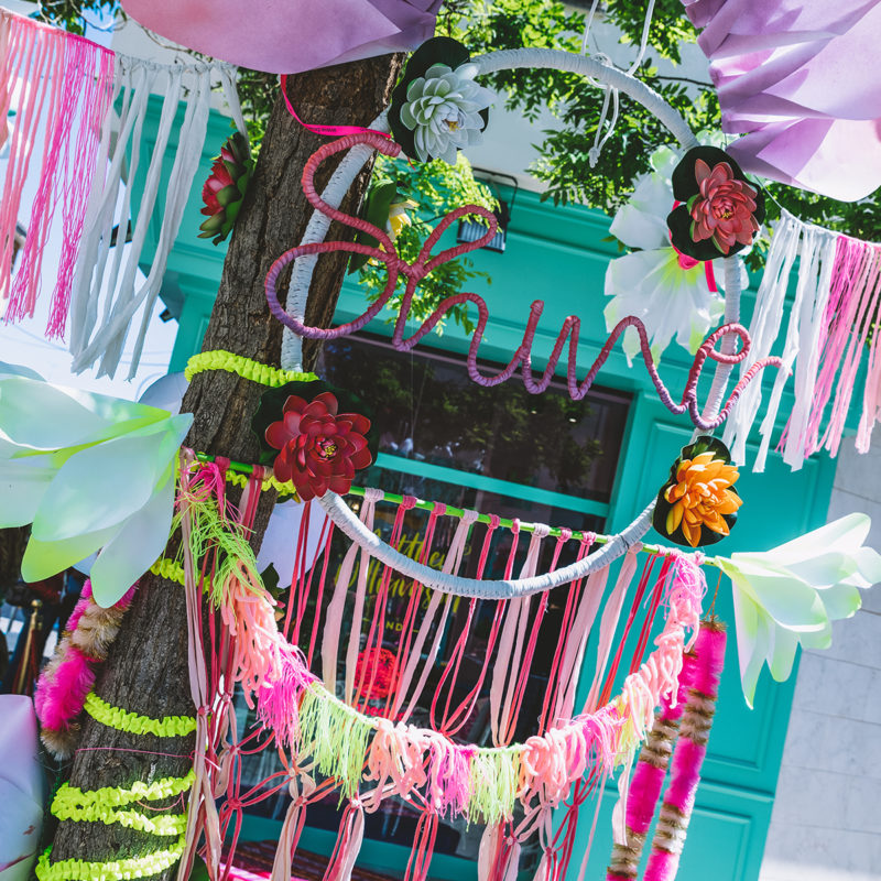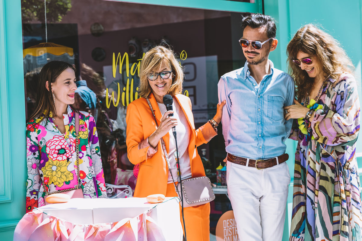 La tienda de Bconnected y el nuevo showroom de Matthew Williamson se encuentran frente a frente; flores gigantescas, figuras de papel y cintas de colores adornan la calle donde los invitados conversan alegremente y disfrutan de las melodías suaves del DJ.