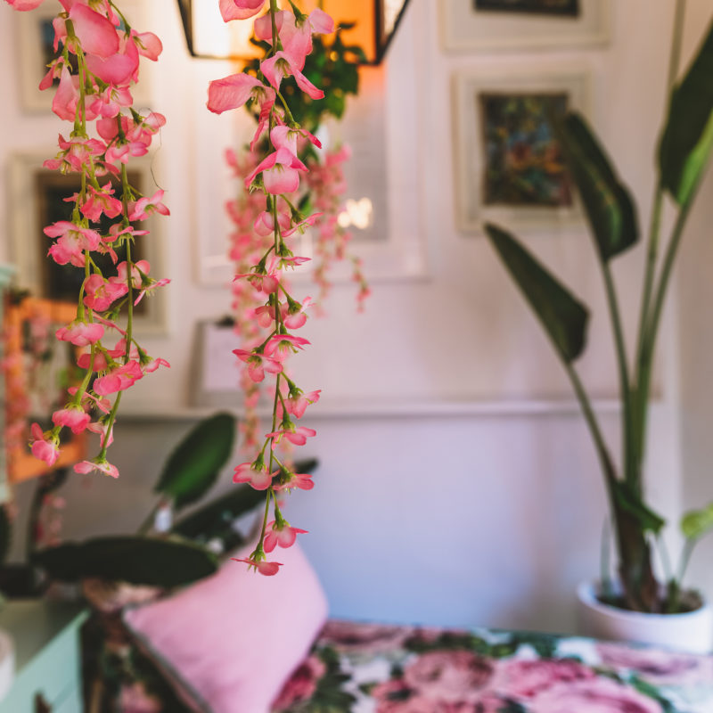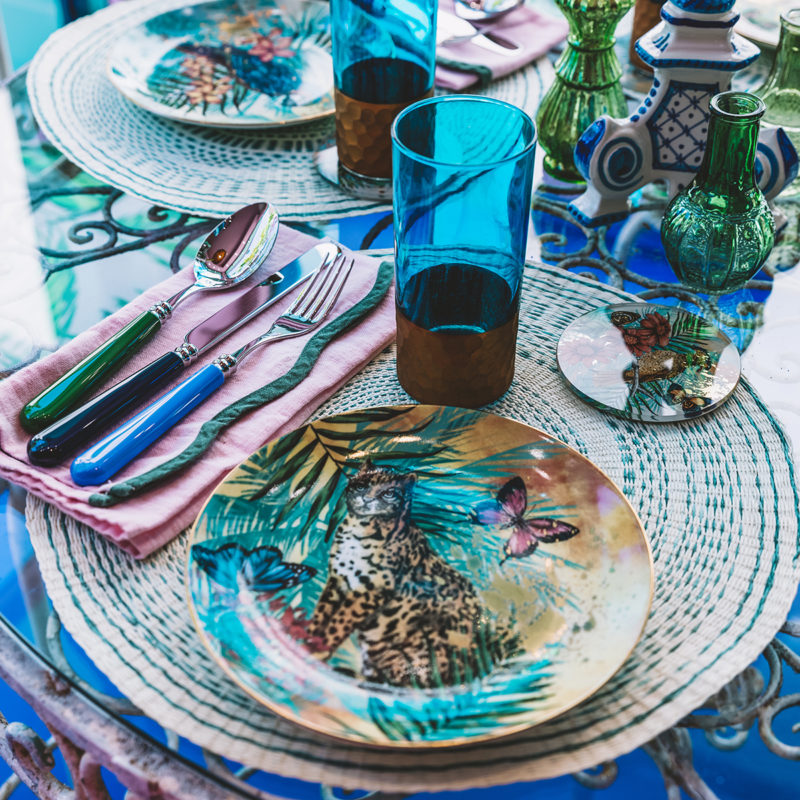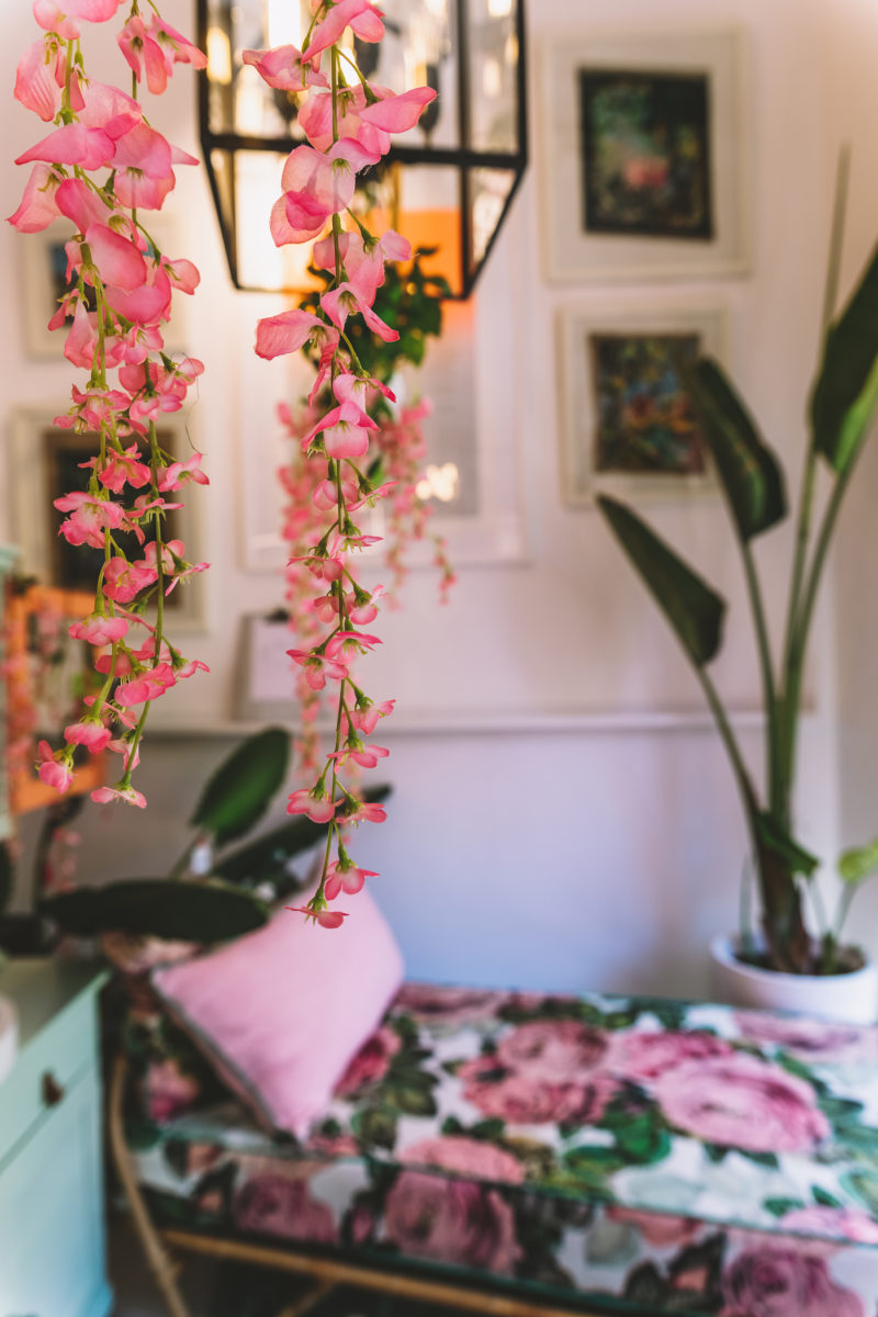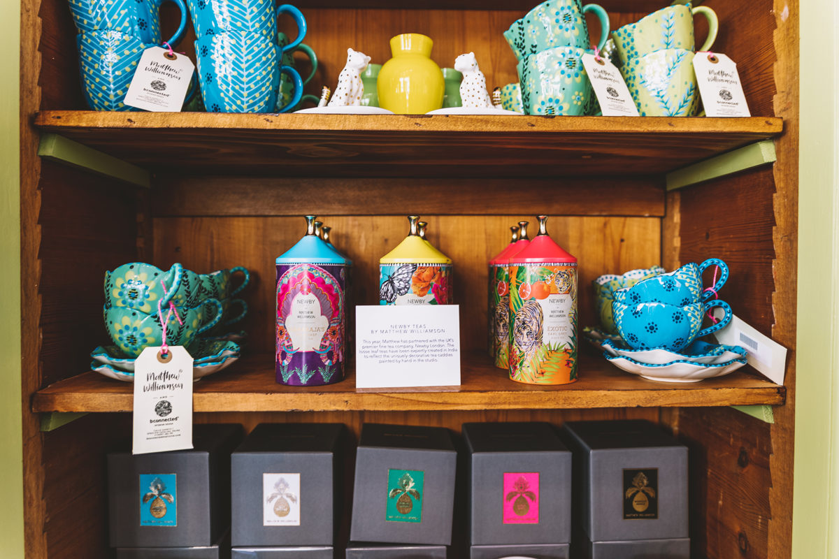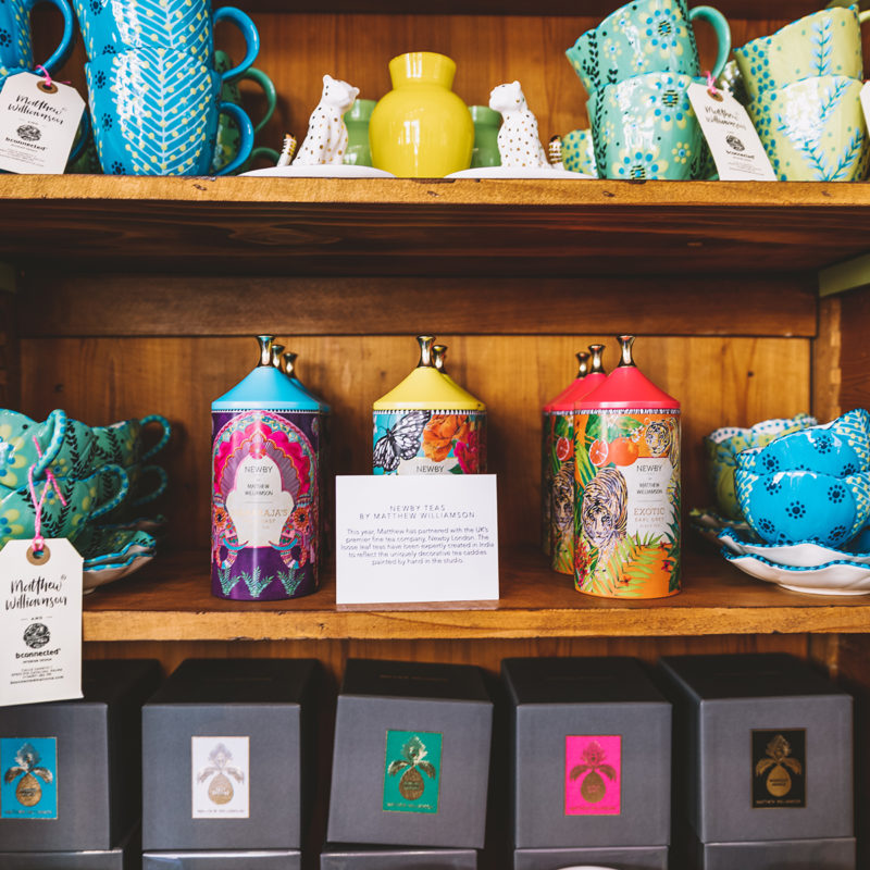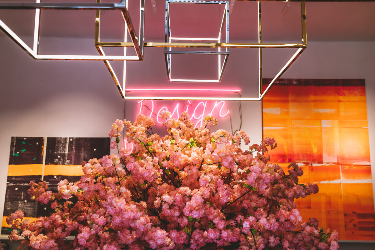 El showroom tiene colores vivos y estampados únicos, donde la vista va sola de un lado a otro. Desde pequeños detalles como tazas de té en forma de pétalos y velas de cerámica de lujo hasta piezas de decoración más llamativas, como por ejemplo un armario-aparador de cristal, el local está lleno de inspiración para aquellos que quieran añadir un toque de color a su hogar. Ambos diseñadores han combinado sus estilos a la perfección, usando colores complementarios para crear algo que evoca a un “sueño tropical”.