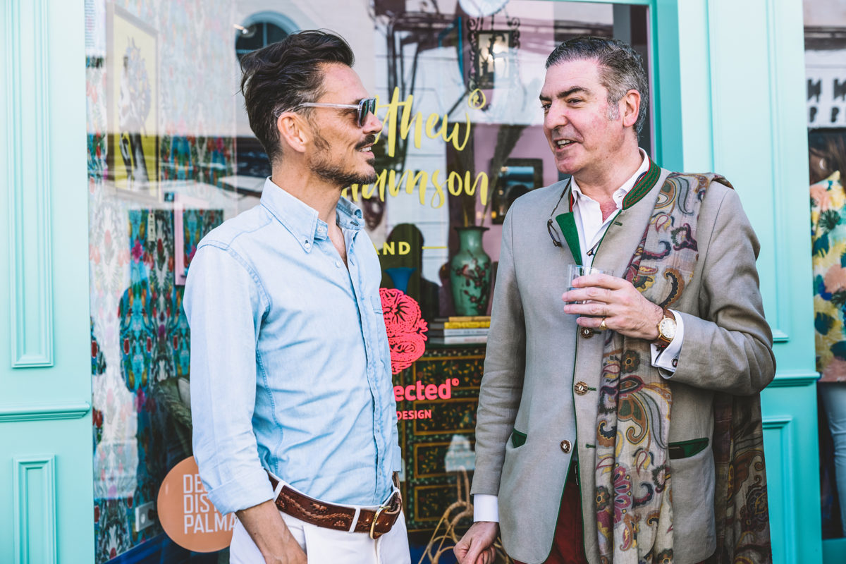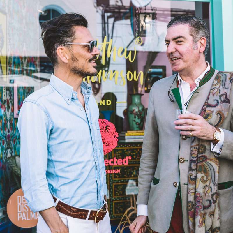 Sobre el fondo de su papel pintado “Deya Meadow”, avistamos a Matthew, que irradia una gran sonrisa y lleva una camisa azul pastel. “Hoy es la culminación de 9 meses de planificación, creatividad y mucho trabajo, pero realmente es un día alegre para celebrar un nuevo espacio en Palma para aquellos interesados en el diseño de interiores. Es un honor y me siento muy halagado de formar parte de Bconnected.”
