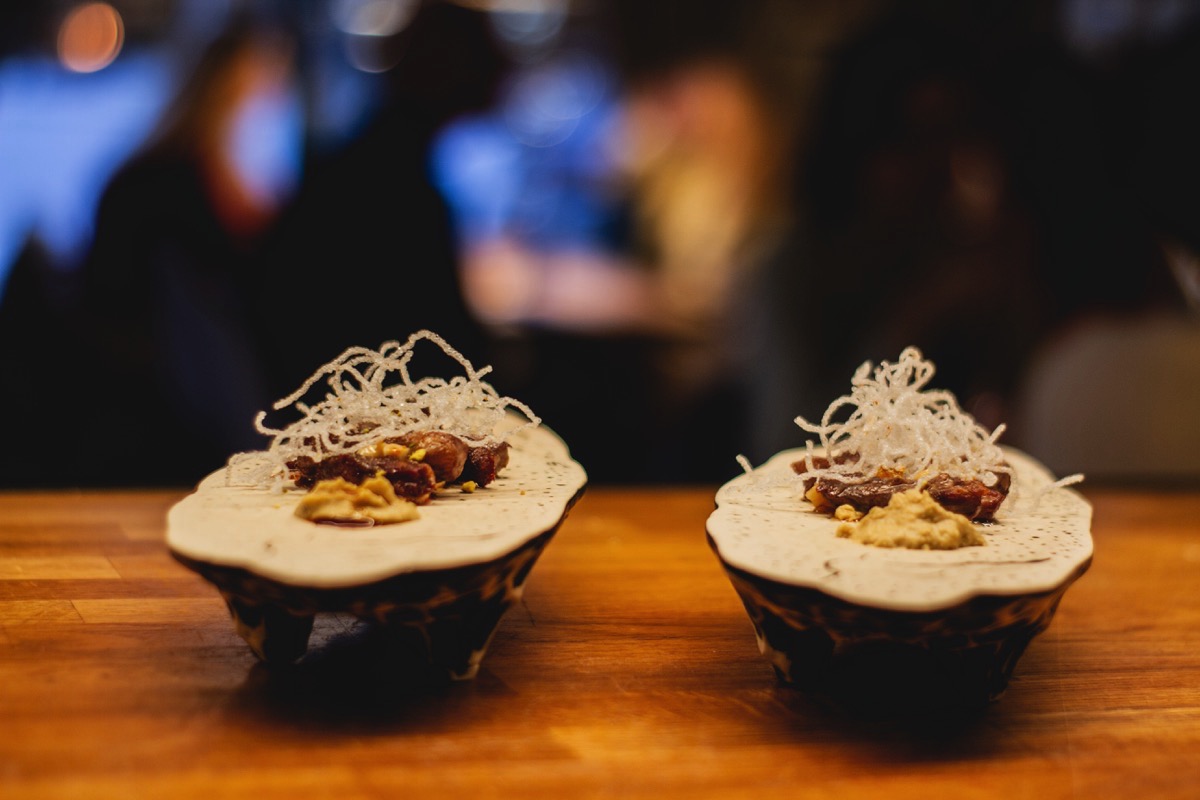 Alejándose de los espacios más barrocos de Santa Catalina, NUS propone un concepto que gira en torno a la sencillez honesta, con la calidad y el cuidado de los platos como eje central. La chef Irene Martínez, con un impresionante currículum gastronómico que incluye Arume y Santi Taura’s Dins, y una interminable lista de lugares que le han servido de inspiración, se ha embarcado ahora en su propio viaje haciendo lo que mejor sabe: ofrecer una abundante comida de inspiración asiática enraizada en la tradición que sigue los flujos naturales de los productos locales. NUS ofrece una suculenta presentación de comida hecha para compartir que llena la mesa de color y platos de corazón, como la deliciosa tortilla de gamba roja, el nigiri de pez limón, el delicado tartar de atún o la tradicional lubina china.