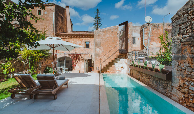 Situada en el sereno sureste de la isla, cerca de Santanyí, esta casa es un testimonio de transformación arquitectónica. Inicialmente envuelta en la oscuridad y caracterizada por un trazado inconexo, fue revitalizada hasta convertirse en un armonioso refugio. Enclavada entre una mezcla de olivares, almendros y la tierra roja de la región, la propiedad destila carácter local con el uso de la piedra rojiza de Santanyí para las paredes. Una casa tan arraigada en la tradición requería del genio creativo de Moredesign, empresa de arquitectura y diseño con sede en Deià fundada por Oro del Negro y Manuel Villanueva, una metamorfosis revitalizadora que insuflara nueva vida a una estructura hasta entonces desafiante.