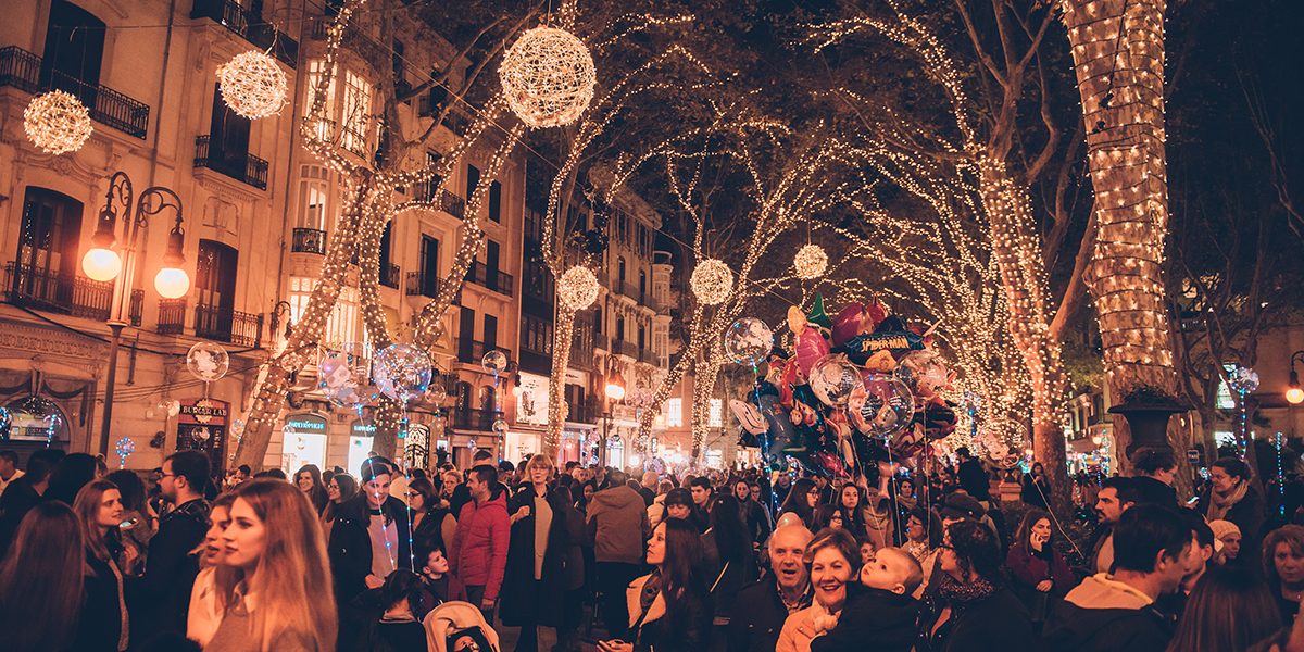 Si vas por Palma, ya las ves. Calle tras calle, las luces de Palma están ya colocadas en árboles, plazas y tiendas. Esta pronta preparación se debe a que este año el encendido de luces se hará un día antes del Black Friday: el 28 noviembre en el Paseo del Borne. Prepárate para una tarde de emoción. Las luces se encenderán a las 19:00 h y será una tarde llena de magia.