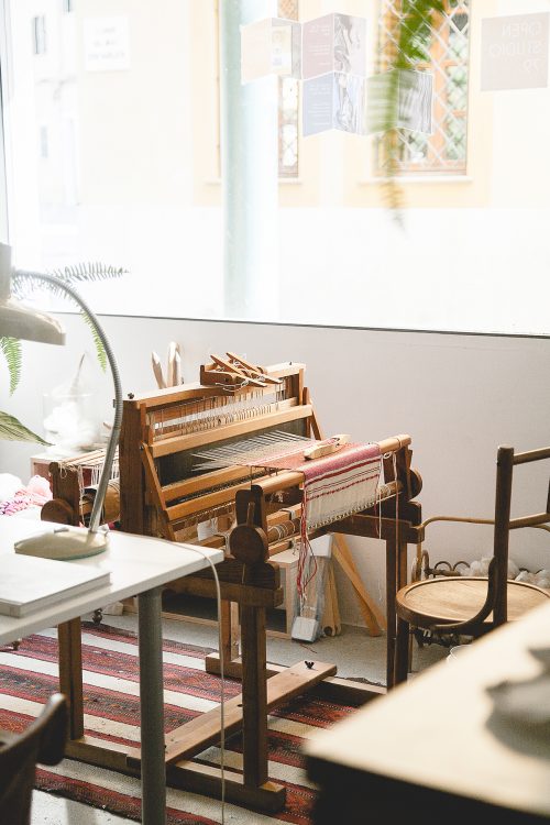 “El aprendizaje estimula el trabajo y el alma –nos dice–, y es un placer ver a artistas más jóvenes involucrarse en esta actividad”. Buen ejemplo de ello es Mariana Muravito, una diseñadora gráfica que se apuntó a una clase de tejido en Openstudio79 y quedó prendada de la técnica; sus bonitos y llamativos tapices y su joyería, que reflejan la esencia del mar y el paisaje mediterráneo, son cada vez más preciados y tejer se ha convertido para ella en algo más que una simple afición. Otros artistas que han expuesto su trabajo en Openstudio79 son la ceramista Anna Skantz, el diseñador gráfico Pablo Salvaje, Alamar Editions y la artista textil Adriana Meunie.
