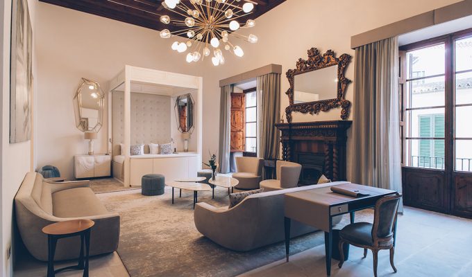 El canto de los pájaros nos devuelve al Palacio Can Marques y, cuando expresamos nuestra admiración por su diseño, hay un silencio más suave y sentido. “Can Marques es mi…”. Busca las palabras, pero encuentra dificultad y cambia a su lengua materna, el francés. Suspira: “… Bueno, todo viene de conocer a Kim”. La conversación tiene ahora un tono diferente y sus viajes a lejanos lugares pasan a un segundo plano. Se refiere al momento en que Kim compró el Palacio Can Marques y vivía en una de sus habitaciones. Abre mucho los ojos. Cuenta que ella le dijo que era “fabuloso para albergar un hotel boutique”, a lo que él contestó con un “nunca”. Nos reímos, mientras ella señala el que hoy es uno de los más majestuosos sitios de Palma donde alojarse. Le preguntamos por su suite estrella y no lo duda: Renaissance. Describe un cuadro que hay allí, de una pareja caminando apresuradamente por una galería de arte. No sorprende su pasión por él. El ritmo, la libertad y el mundo de fondo. Todo encaja, como encajan sus paneles de inspiración. Aline, Kim y el mundo.