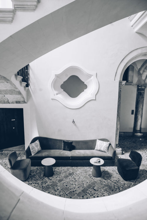 Tan pronto como Aline sale a la cálida brisa de Mallorca, notamos una irresistible energía en torno a ella, humilde, sabia e intuitiva. El cuello de su ligera blusa de satén resplandece con el sol de la tarde, destacando un cierto centelleo en sus ojos, que han visto la belleza allende la costa de Palma. Proponemos sentarnos en un lugar del jardín tropical del Palacio Can Marques, un hotel con diseño suyo al que dio vida junto con su compañero Kim. Acepta, mientras quita del sofá unas cuantas hojas rizadas, se sienta y esboza una sonrisa incluso antes de que empecemos.