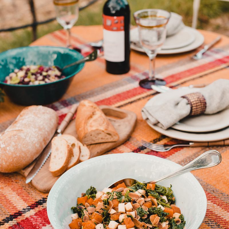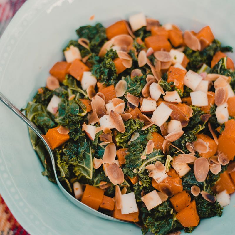 Fuertemente relacionados con la calabaza, los sabores dulces y terrosos de la calabaza butternut personifican el otoño. Un aliño de vinagreta de sidra de manzana ofrece un equilibrio de tarta mientras las almendras mallorquinas laminadas añaden el toque local.