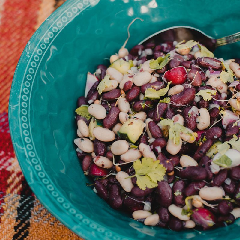 Esta clásica ensalada de judías no te llevará mucho tiempo, combinando frijoles blancos y rojos con cebolla roja, pepino y vinagreta de mostaza. Los rábanos añaden su inconfundible sabor picante a la mezcla.