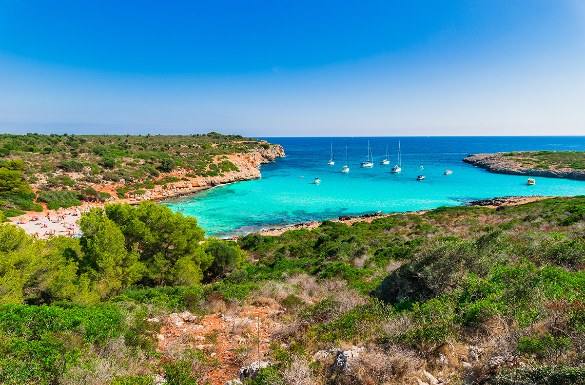 Mantener esta bahía en secreto es difícil ya que enamora a todos los que la visitan. Está situada a 13km de Manacor, entre Calas de Mallorca y Cala Romántica. Los buceadores y escaladores adoran sus acantilados y cavernas. Un camino a un lado de la playa conduce a la cala rocosa de Caló Blanc donde el agua de color turquesa brilla junto a una asombrosa cueva submarina. Una formación de arco de roca natural es otra atracción en la zona y proporciona un telón de fondo sorprendente para hacer fotos. No hay una zona de estacionamiento oficial y tomará aproximadamente veinticinco minutos caminar desde la carretera principal. El camino pedregoso pasa junto a una señal de propiedad privada. Continúa sin miedo a través del bosque hasta llegar a las dunas.