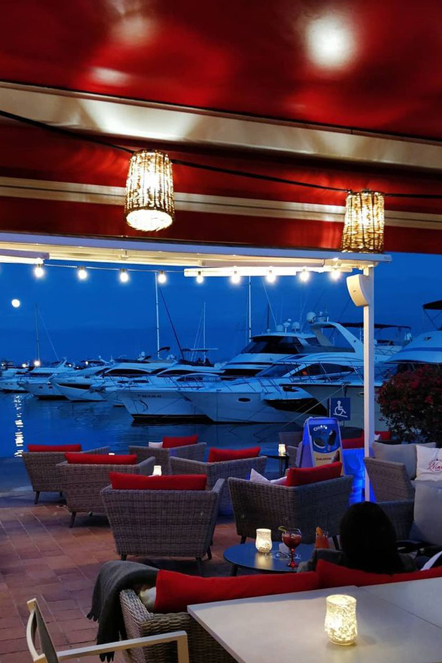 Para cócteles para acompañar la puesta de sol, Aqua Cocktail & Snack en el Paseo Marítimo en el puerto deportivo es una excelente opción. Disfruta de un daiquiri de fresa a la orilla del agua con vistas a los glamurosos yates. BARco Nina, muy cerca de aquí también ofrece música en vivo.