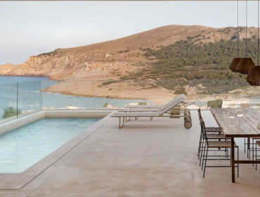 Esta extraordinaria villa situada en lo alto de una colina en Cala Mesquida combina el encanto morisco con un diseño contemporáneo, y cuenta con una piscina en la azotea e impresionantes vistas al mar.