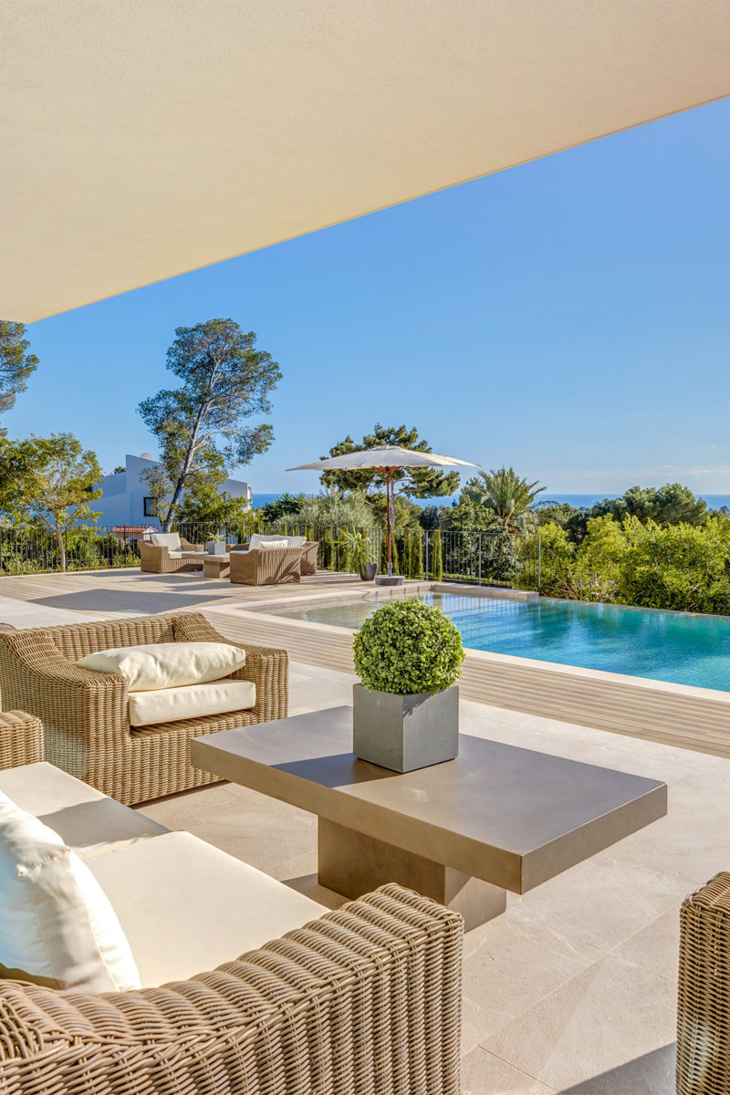Si bien se pueden encontrar villas de lujo que tienen acceso directo al mar, éstas son una excepción (y tienen un precio generalmente muy elevado). Si está buscando una villa residencial, entonces Cas Catalá es la zona en la que encontrarás una selección más amplia, con una colección de mansiones de estilo mediterráneo en su mayoría tradicionales intercaladas con alguna construcción de elegante arquitectura contemporánea. Prácticamente todas con fabulosas vistas al mar. También se pueden encontrar algunas villas repartidas por la zona de Illetas, que se usa como casa de vacaciones para inquilinos de temporada.