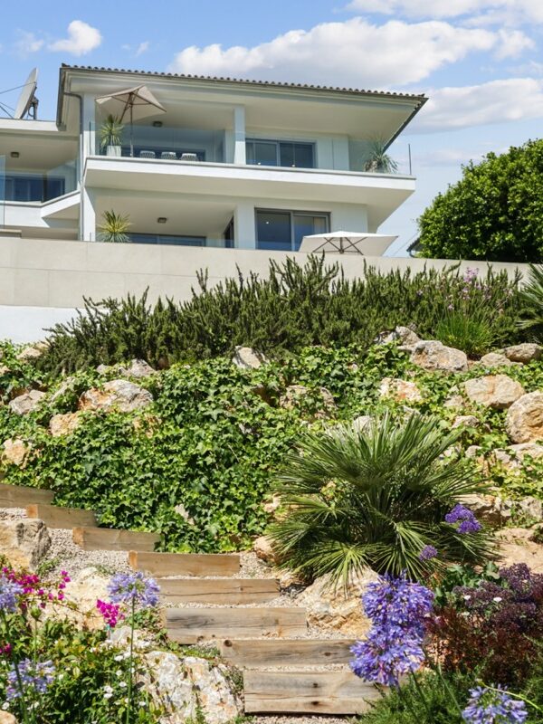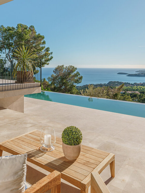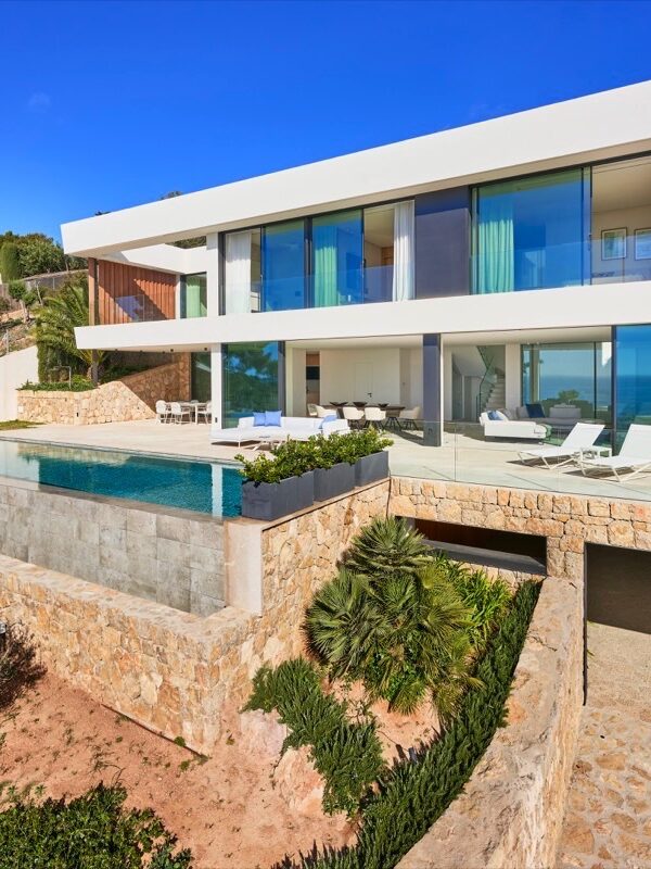 Villas mediterráneas más grandes y casas familiares con jardín, piscina y vistas al mar se encuentran detrás del puerto, en la zona más amplia de Portals Nous. En Costa d’en Blanes se pueden encontrar casas contemporáneas de diseño de nueva construcción con la última tecnología que se adaptan bien al paisaje circundante de esta ubicación de vanguardia junto al mar.