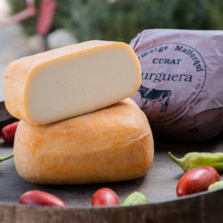 La quesería elabora un total de cinco productos. Dos a partir del suero de la leche: requesón y “llet formatjada”, una especie de requesón líquido que se vende en botella; y tres más a partir de la leche pasteurizada: queso fresco, semicurado y curado. A diferencia de Menorca, donde los quesos de vaca suelen hacerse con leche cruda, en Mallorca se pasteuriza la leche para luego cuajarla a 32 grados. De este proceso se obtiene el queso fresco, un queso sin fermentación alguna, solo de leche cuajada. Sin embargo para la elaboración de los quesos semis y curados sí es necesaria la fermentación, pues será el fermento lo que dará sabor y textura a la pieza. El “semi” tiene una curación entre 45 días y dos meses, y el curado un mínimo de cinco aunque algunos quesos llegan al año y medio o más, convirtiéndose en las piezas más demandadas.