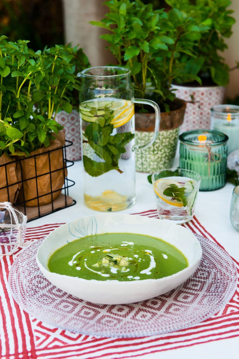 Servir frío con hierbas frescas y una cucharada de yogur para adornar.