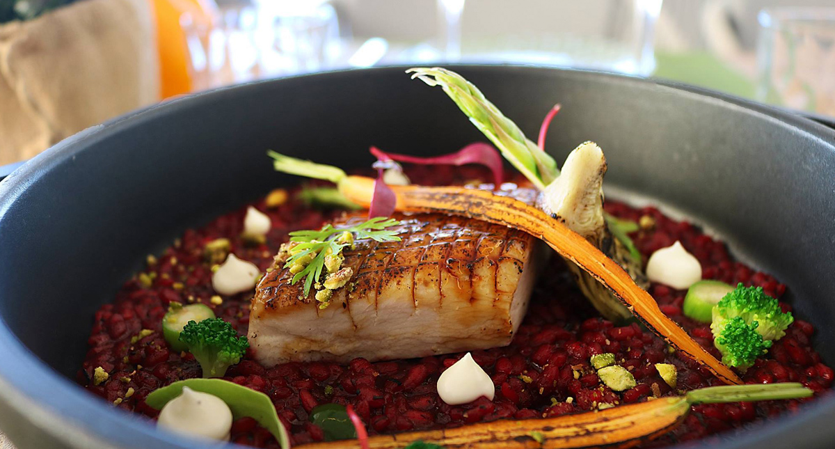 Al entrar por la puerta de este restaurante con estilo de estudio en el Puerto de Pollensa, encontrarás un comedor que rezuma frescura rústica. El escenario perfecto para que el chef David Rivas te lleve por una aventura recomendada por la guía Michelin, con un innovador concepto de cero residuos. Su nuevo menú Omasake es infalible para quienes buscan una experiencia km0 de temporada. Las croquetas de puerro, el dentón a la parrilla, el cordero confitado o la coca de cactus mallorquina son sólo una pequeña muestra de lo que puedes esperar.
