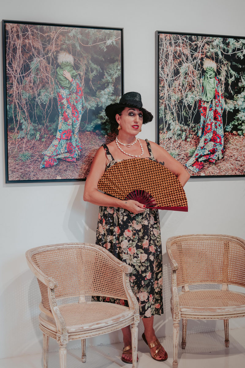 La primera aproximación de Rossy a la fotografía fue hace años con su antigua cámara polaroid en blanco y negro, pero ha sido la inmediatez que ofrecen los smartphones para captar la inspiración lo que la ha llevado a adentrarse mas en ello y una muestra de su trabajo se expone en la Galería Kaplan Projects, el nuevo proyecto de la reputada comisaria de arte y art advisor, Mercedes Estarellas, ubicada en la céntrica Costa de Santa Creu de Palma. “Se trata de unos autorretratos sin rostro en base a un monólogo que escribí para el Piccolo Teatro de Milán que tuvo tanto éxito que quizás lo traigo a Mallorca. Se titula “Resilienza d’Amore” y explica que el rostro es un vampiro que roba toda la atención. Me gusta el “Camouflage” con figuras femeninas cubiertas, enmascarando su identidad. Surge de forma accidental y puedo hacerlo en México, en el Massai Mara o en la Acrópolis de Atenas pero siempre relacionado con el universo femenino y con tener algo en la cabeza porque es la manera de expresar lo que las mujeres cargan en la vida. Tiene una visión dadaísta y de poesía visual.”