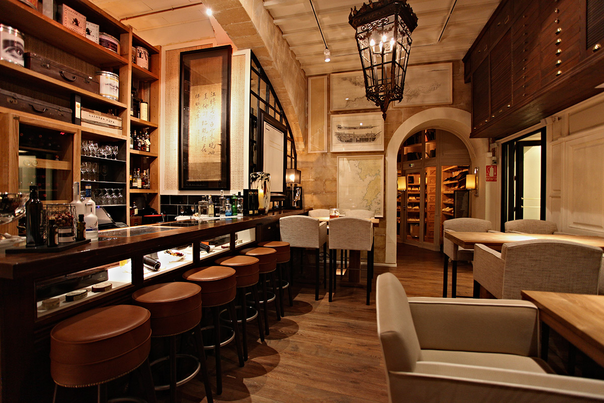 Tast Club es la esencia de lo cool, un restaurante escondido en la calle de Sant Jaume que no se vería fuera de lugar en Londres. Su elegante bar se encuentra bajo un techo abovedado, salpicado de lámparas de araña y espejados cristales. El ambiente es de club privado,