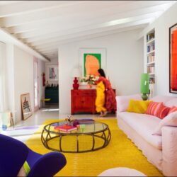 En un paisaje mallorquín donde los interiores suelen inclinarse hacia tonos neutros suaves y orgánicos, Sat Chit Ananda ofrece un contrapunto sorprendente. Christine Leja y su equipo de bconnected infundieron a la villa colores vibrantes, texturas lujosas y una energía que celebra tanto la alegría como la sofisticación. Las obras de arte a gran escala