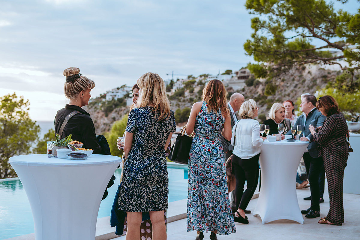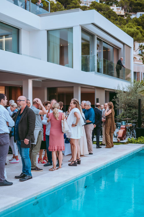Con un maravilloso el atardecer como telón de fondo y música en vivo se creó el ambiente perfecto donde los presentes intercambiaron opiniones sobre la impresionante villa de lujo. El catering proporcionó una exquisita cocina fusión que se adaptaba perfectamente al estilo elegante del evento.