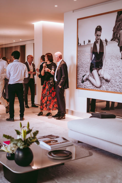 Las puertas se abrieron y los invitados descubrieron por fin la villa donde se exhiben algunos de los mejores trabajos de Minotti, de diseño minimalista y con atención centrada en el detalle .Las impresionantes obras de arte del interior fueron seleccionadas por Drew Aaron, de Gallery Red.