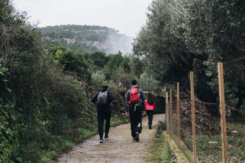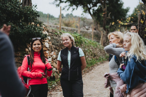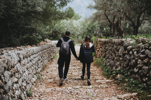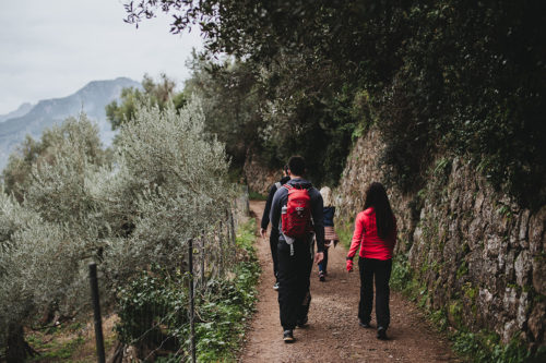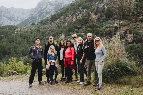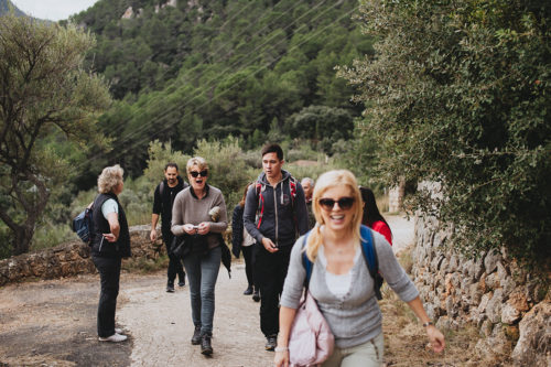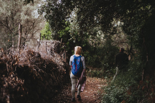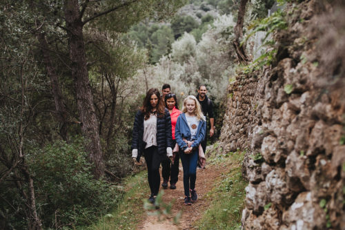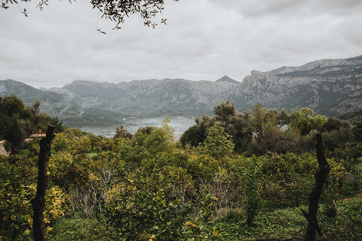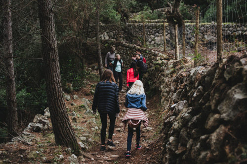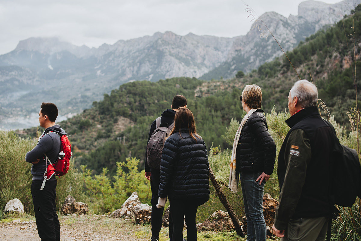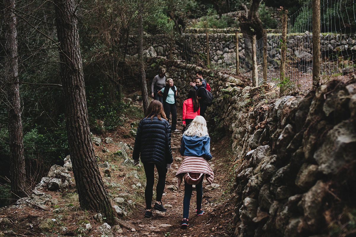 El invierno en Mallorca se disfruta con un paseo por las frondosas montañas, que se encuentran por doquier; ofrecen paisajes con una vegetación exuberante que se extiende hasta donde alcanza la vista. Para contemplarlos y aprovechar el maravilloso clima, un grupo de amigos de diferentes generaciones y distinto grado de preparación para el senderismo decidimos hacer una caminata por los alrededores del pintoresco pueblo de Sóller, situado al noroeste de la isla. Hay 116 rutas en esta zona, con diferentes niveles de dificultad. Nosotros elegimos un recorrido que empieza en la primera rotonda tras el túnel que lleva a Sóller. Tiene un primer tramo de subida de veinticinco minutos, pero luego el camino es relativamente llano. Con el apetito despierto, iniciamos el descenso al pueblo para regalarnos un almuerzo privado vegano, que habíamos reservado con antelación.
