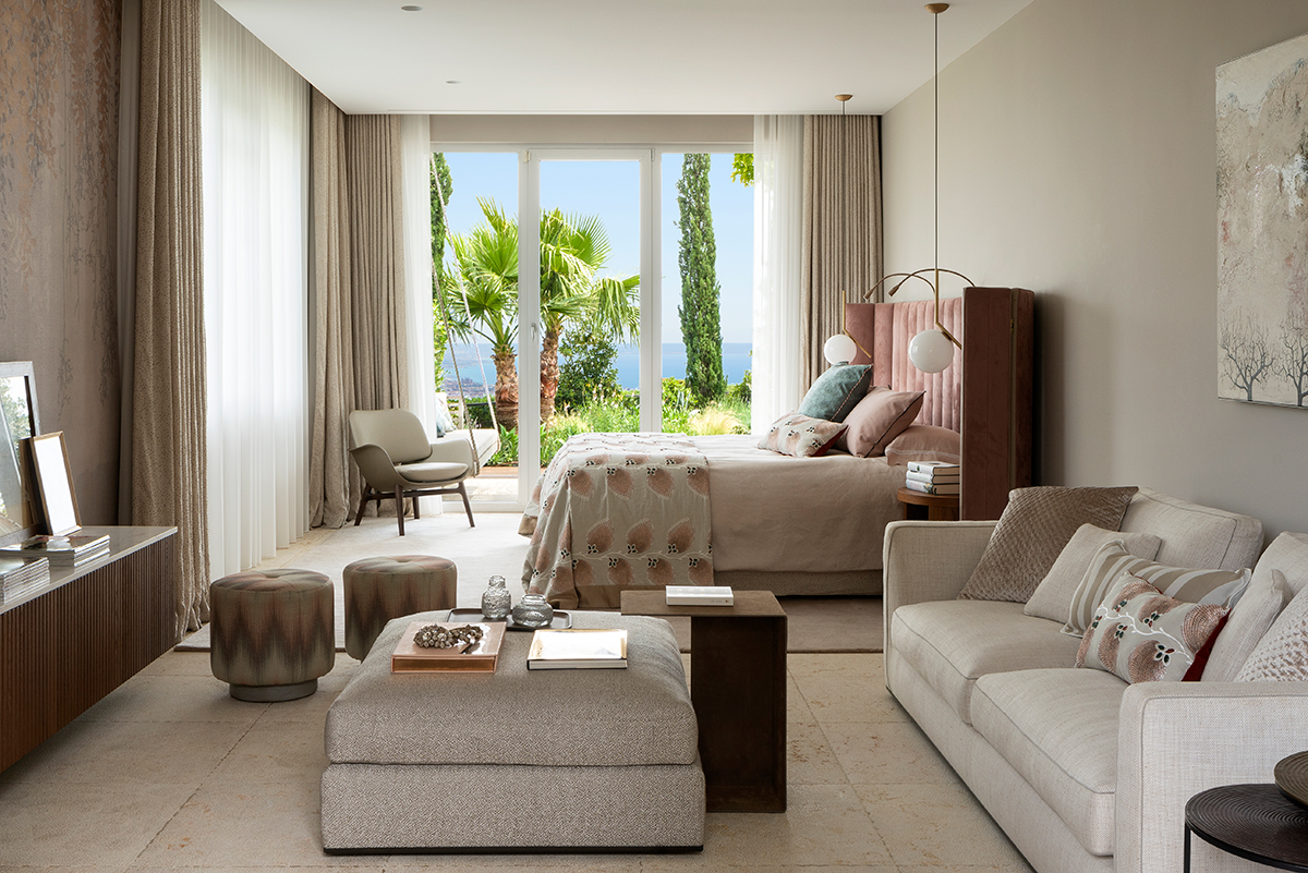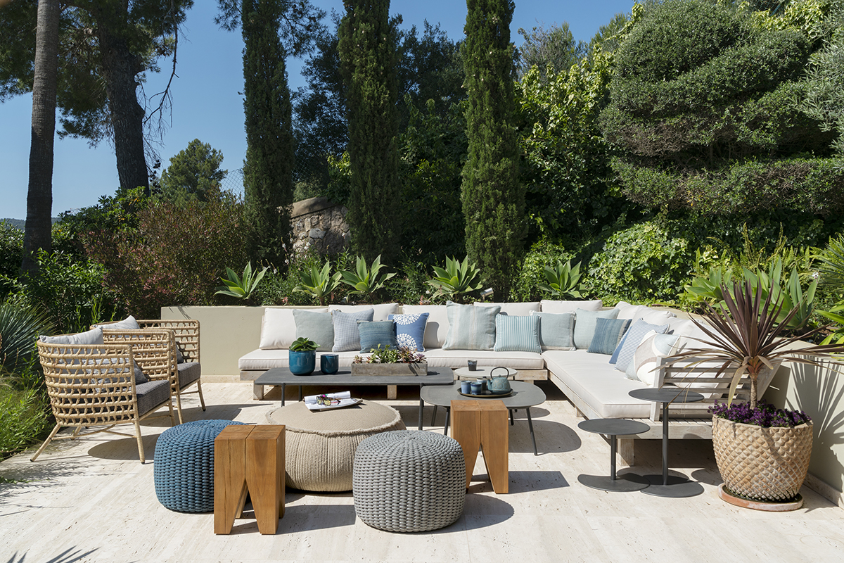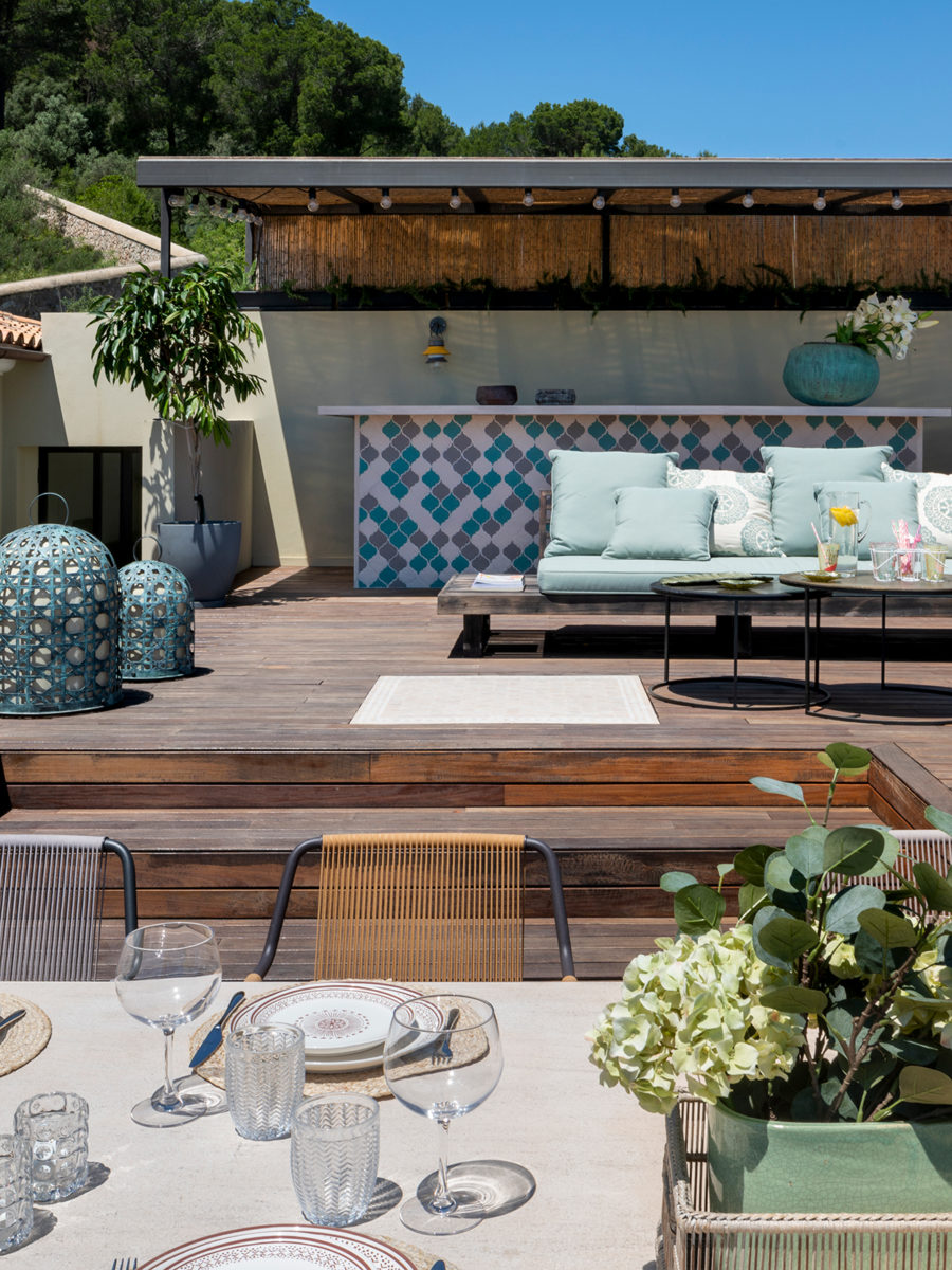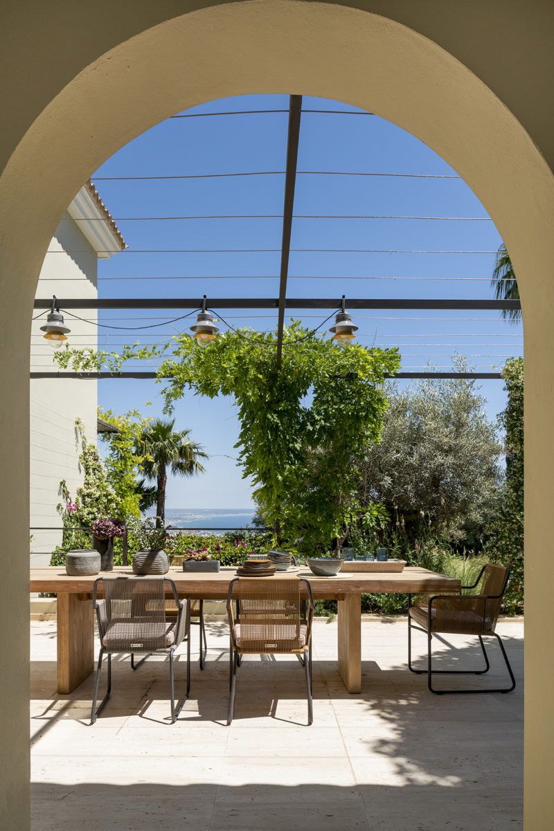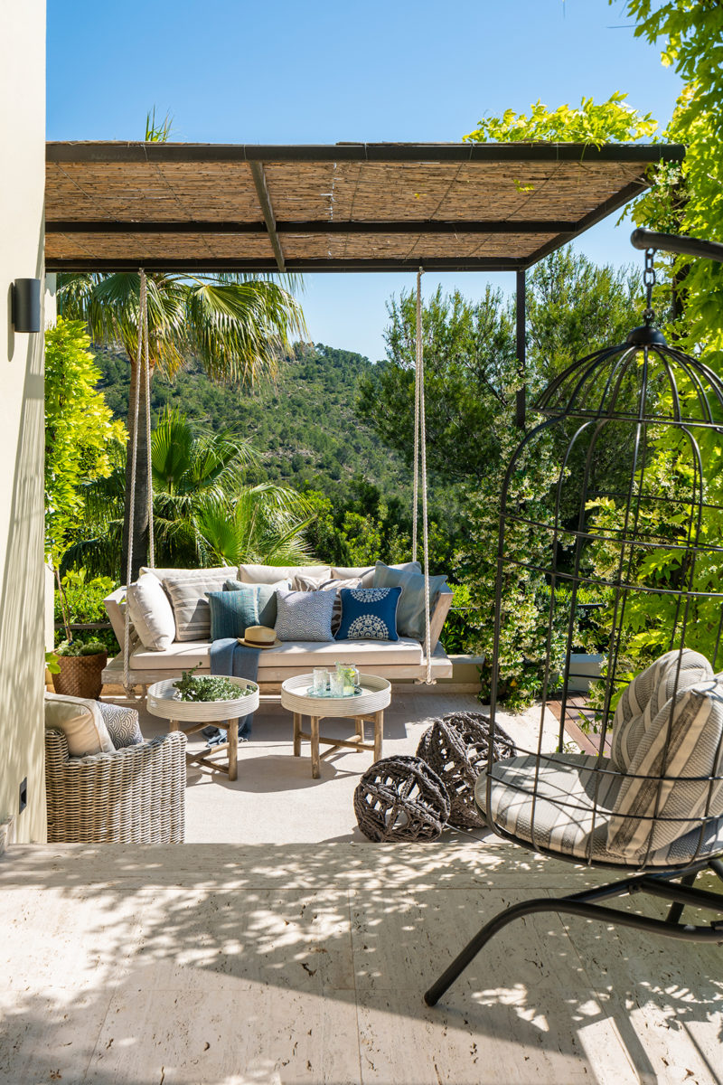 La decisión de renovar primero golpeó a Helen en una firma de libros por el galardonado Stephen Woodhams. En lugar de salir con su libro y algunas ideas como pretendía, Helen dejó esa firma con una colaboración en mente. Poco tiempo después, Stephen voló a Mallorca y conoció a Helen. Ambos rodearon el jardín y, en veinte minutos, Helen dice: “Stephen había reunido lo que necesitaba para idear su concepto de diseño”. Conocido por ser pionero en el “concepto interior / exterior”, donde la comodidad del interior se brinda al aire libre, Stephen tuvo toda la experiencia para dar vida al jardín de Helen y Georg. Implementó macizos de flores audaces, introdujo plantas autóctonas mediterráneas y volvió a nivelar las fronteras. También actualizó la piscina e hizo espacio para socializar, lo que le dio a Helen la oportunidad de agregar hamacas Roda, pufs Paola Linti y muebles de exterior de Livingdreams. “Fue la mejor inversión que hicimos al crear este increíble jardín”, dice Georg, que ahora pasa más tiempo en el jardín que nunca.
