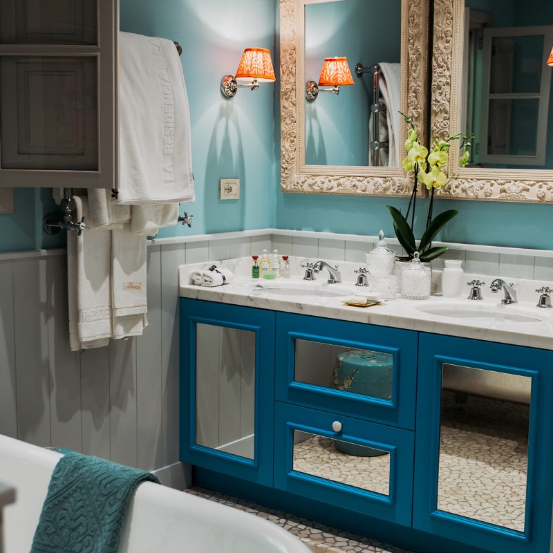 El diseñador británico es famoso por su estilo excéntrico, utilizando en sus proyectos extravagantes estampados étnicos y mucho color. Su estilo, recargado y elaborado, es totalmente opuesto al estilo clásico de los hoteles mallorquines. De hecho, sabrás que estás en la Suite 67 cuando veas unos brillantes azulejos de estilo marroquí, donde un precioso pórtico te lleve a una habitación de un color azul cielo donde también encontrarás detalles tan únicos como plumas y estampado de pieles.