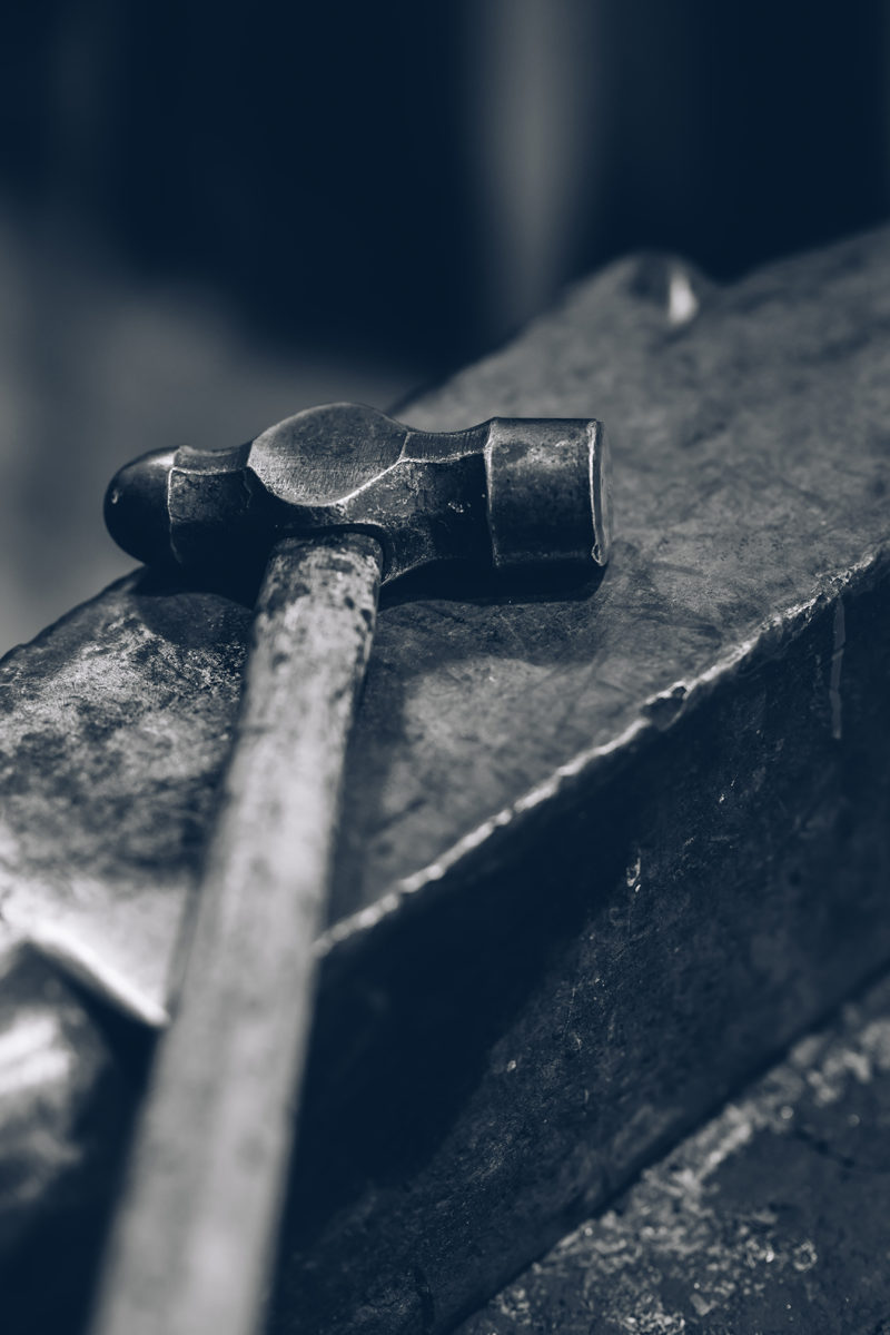 Queremos entender el proceso y Bonifacio nos lo pone fácil, no se hace de rogar. Maniobra su antigua estación de trabajo que se convierte en el centro de atención. “Esto tiene unos ciento cincuenta años”, dice, sobre el yunque reluciente de acero montado sobre una base de roble.