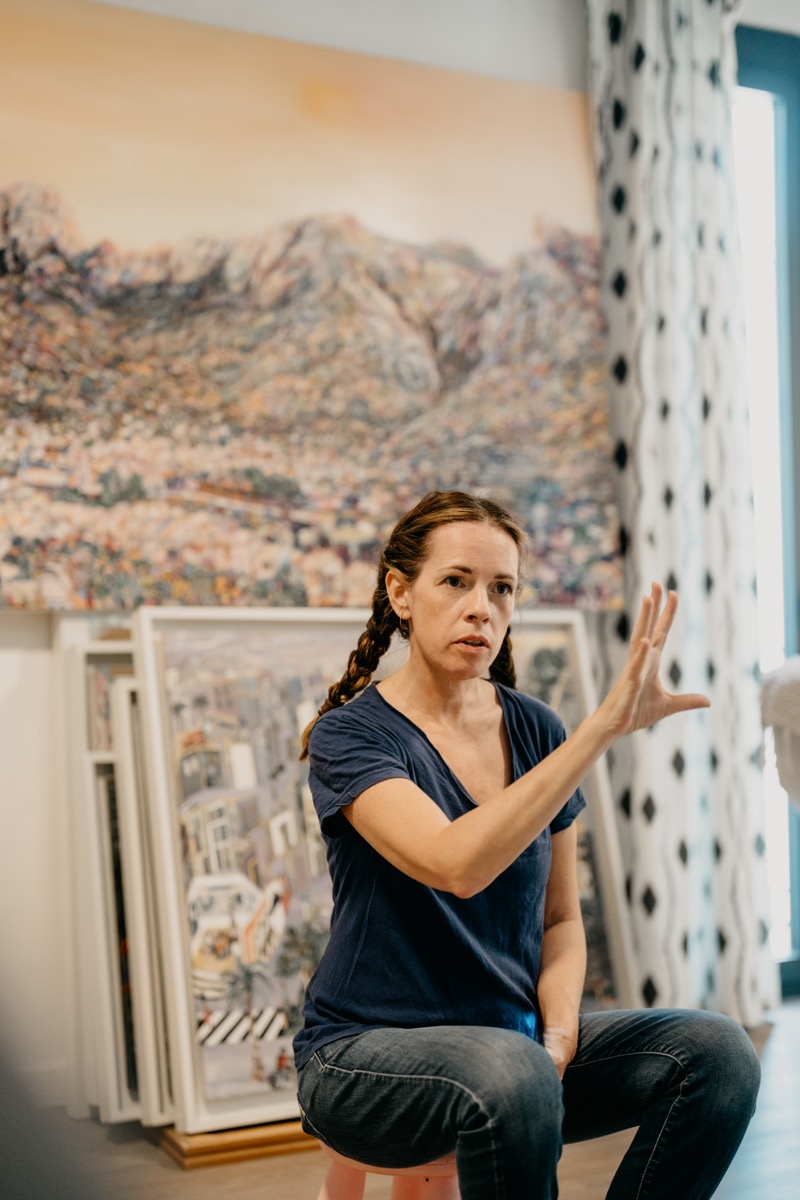 La necesidad de crear de Sally volvió a surgir una vez que se instaló y estableció su vida y su joven familia en Bunyola, impulsada por una profunda búsqueda por comprender el propósito del alma a través de la pintura.