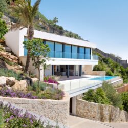 Construida por Alibaz Construcción con una meticulosa atención al detalle y la artesanía, esta villa invita a la vida tranquila sin comprometer la elegancia. Ya sea admirando las vistas o disfrutando de la escalera llena de plantas, esta casa de Santa Ponça es un santuario en perfecto equilibrio con su entorno.