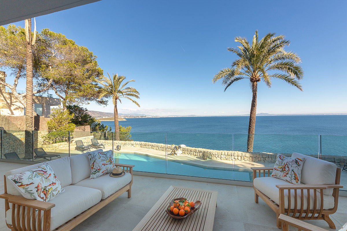 Encaramada en la ladera de Cala Vinyes, esta casa tiene unas impresionantes vistas que se extienden hasta el otro lado de la bahía de Palma. Se construyó en los años noventa, pero ha estado deshabitada durante la mayor parte de su existencia, pues el empresario mallorquín que inicialmente se había propuesto crear aquí una gran residencia familiar cambió de opinión. La casa, de seis dormitorios, quedó vacía y nadie disfrutó de sus estupendas vistas durante muchos años.
