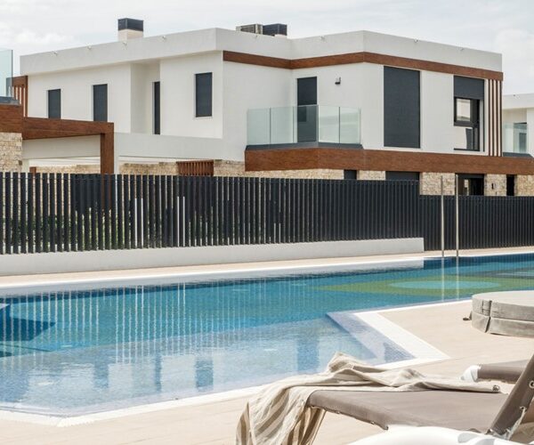 Líneas limpias, grandes superficies acristaladas y envolventes eficientes. Domótica completa, fotovoltaica con batería, sistemas de aerotermia y preinstalación para cargador de vehículo eléctrico optimizan consumo y confort. Distribuciones con suite principal como ala privada, cocina con isla y sala familiar flexible permiten trabajo silencioso o cine en casa. Materiales como piedra local, madera tratada térmicamente y microcemento aportan calidez sin perder minimalismo. Un paisajismo mediterráneo con especies de bajo riego asegura privacidad y orientación. Cuartos de máquinas ordenados, garajes seguros y lavanderías bien ubicadas reducen fricción. Para compradores internacionales, estas viviendas ofrecen mantenimiento predecible, garantías y alta liquidez, especialmente cerca de marinas, colegios y golf.