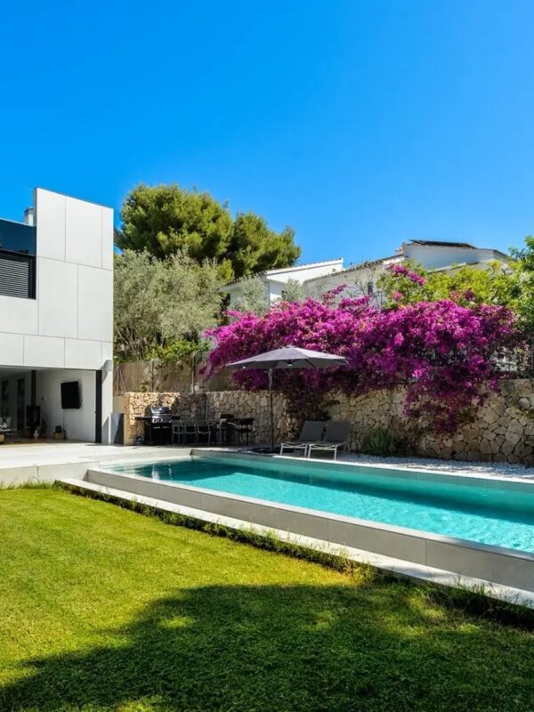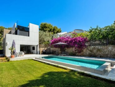 Villa moderna de cuatro dormitorios con piscina y jardín en Cala Vinyes, con interiores elegantes, amplia parcela y un ambiente mediterráneo lleno de calma.