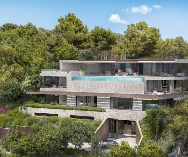 Villa de nueva construcción en Old Bendinat, Calvià, con vistas panorámicas al mar, piscina infinita, suite de invitados y solárium, en una de las zonas más exclusivas de Mallorca.