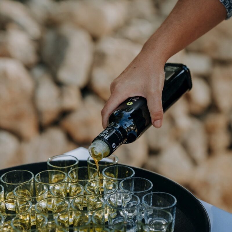 En un hermoso día soleado, padre e hijo, Joan y Miquel, presentaron con mucha pasión su olivar y la producción de aceite de oliva a nuestros invitados. Todo el mundo pudo sentir el corazón y el alma que han puesto durante muchos años en la producción de uno de los mejores aceites de oliva en toda España.